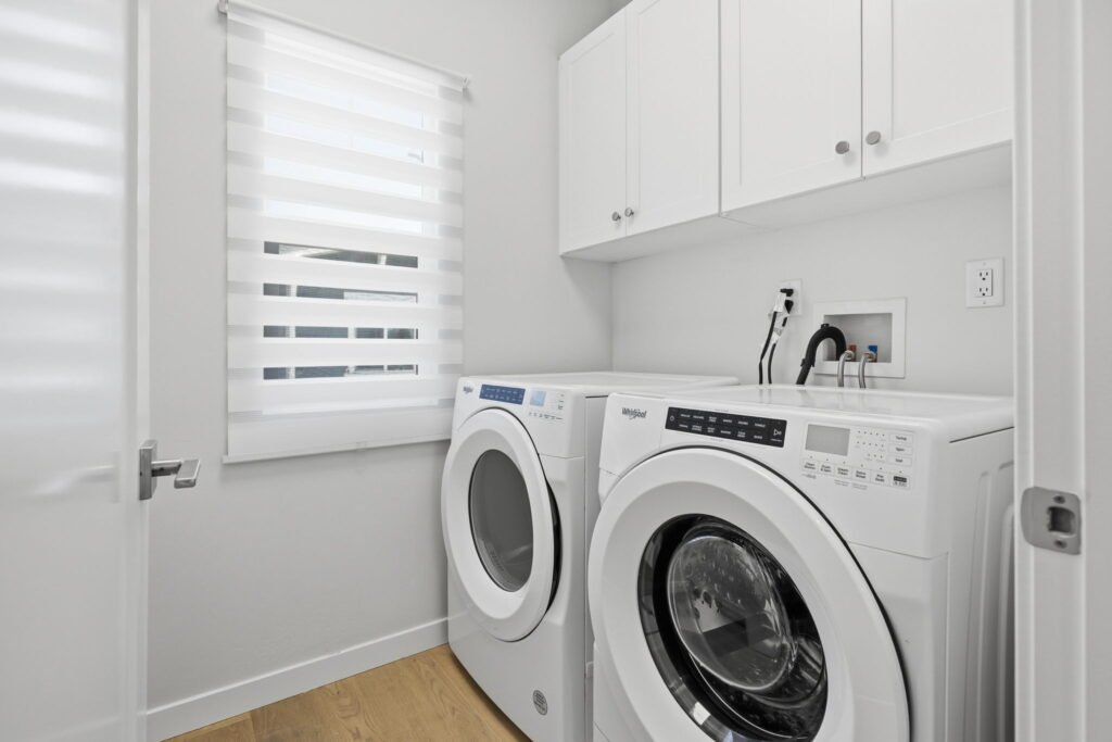 Separate laundry room with side-by-side washer/dryer, right off the oversized Primary Suite that boasts a walk-in closet and en-suite bath. Other highlights include a GAS STOVE, WiFi HVAC Thermostat for central Heat/AC, Milgard Windows, Oak-Engineered Wood Floors, Solar-Ready Roof and Builder’s Warranty!