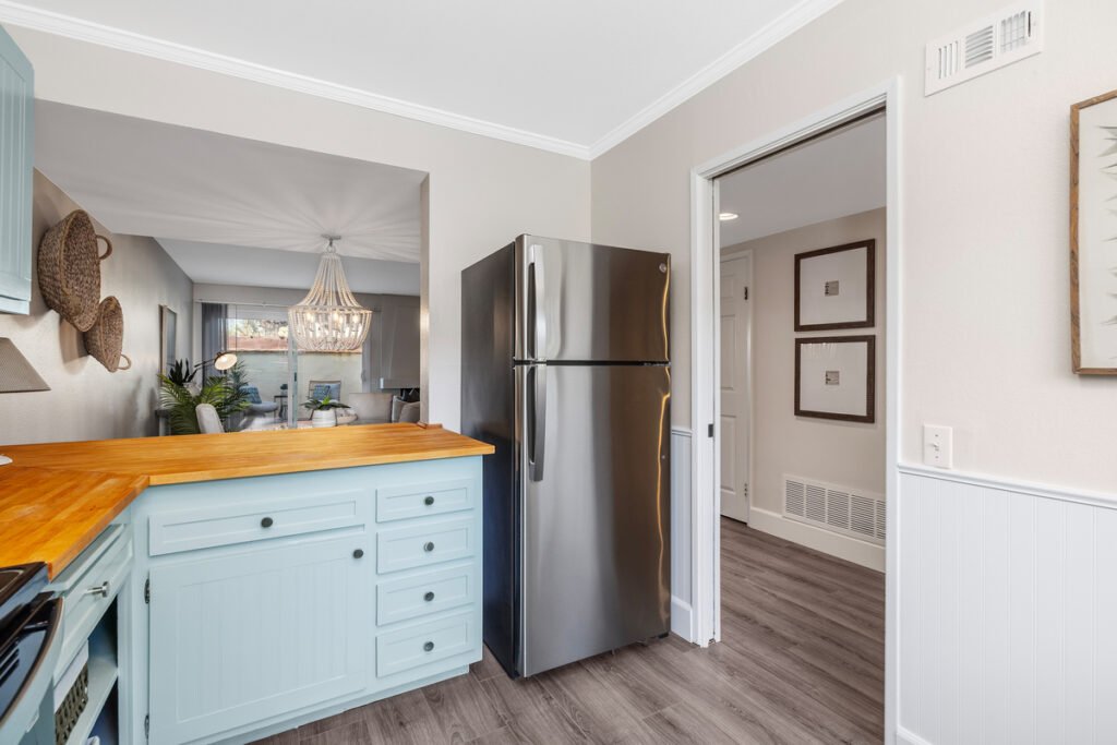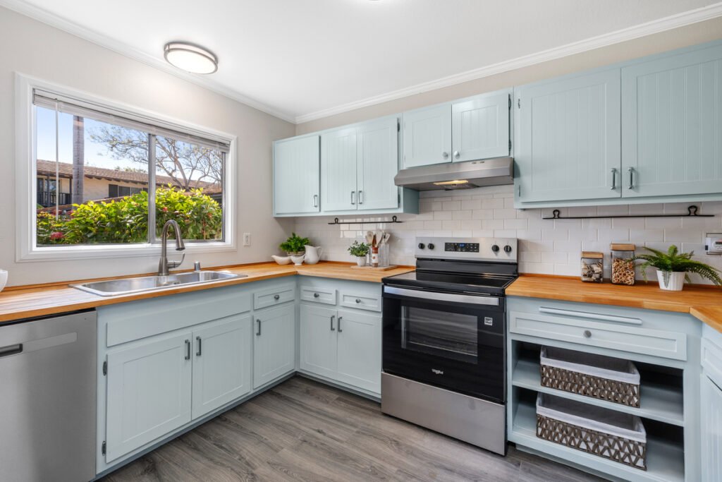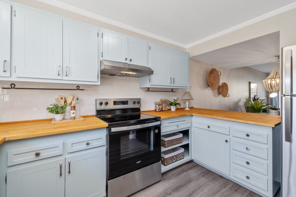 Welcome to this elegantly updated 3-bedroom featuring a newly refinished kitchen with butcher block-style countertops, brand new stainless steel appliances including dishwasher, range/oven, and hood, along with modern hardware and decorative accents.