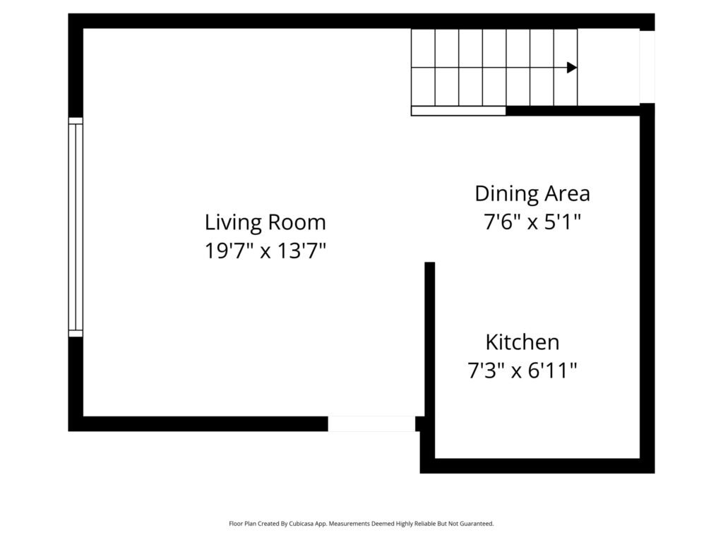 The split-level layout opens up to vaulted ceilings that pull in natural light that fills the space, giving the space an openness that the square footage alone doesn’t tell you. The living room is anchored by the oversized window with unobstructed views and warm vinyl plank floors that run throughout both levels. The kitchen is clean and functional with white shaker cabinets, a pendant light, and everything you need without any wasted space.